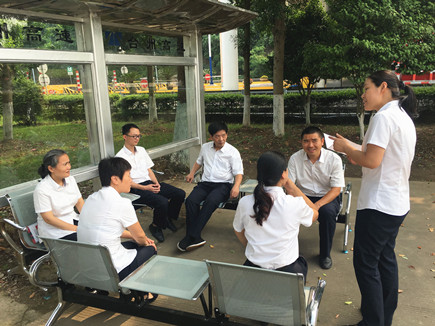 臨海南收費所自創(chuàng)環(huán)境進行業(yè)務(wù)學(xué)習(xí) 6月8日下午,臨海南收費所因辦公樓改造施工,組織員工在室外露天場地,分析、討論5月21至31日交叉稽查中發(fā)現(xiàn)的不規(guī)范操作業(yè)務(wù),并確定整改措施,規(guī)范收費流程。