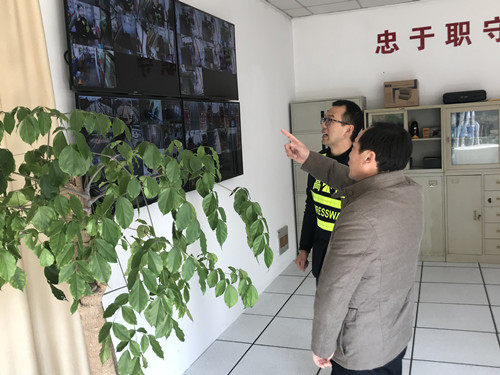 圖為考察小組在崗亭內現場觀看文明服務