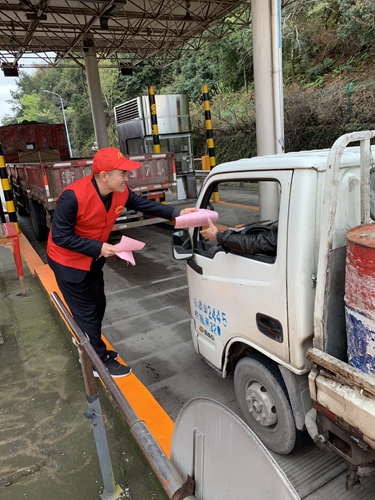 圖為志愿服務隊合影 “師傅,您好,您知道連續行車4小時,必須停車休息多少時間以上嗎?” “至少20分鐘以上吧。” “在高速公路上行車,如果車輛發生故障、事故等情況,請問您應該怎么處置呢?” “立即靠右側停車,打開報警閃光燈,在車輛后方150米以外放置三角警示牌,車內所有人員下車轉移至護欄外等安全地帶。” “請問?如果車輛超載(員),車子在行駛過程中,會出現哪些狀況嗎?” “應該容易引發爆胎、突然偏駛、制動失靈、翻車等情況。”