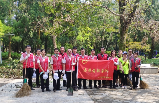815日上午,臺州收費所黨支部組織黨、團員青年志愿者共15人,助力黃巖區(qū)九峰公園臺風(fēng)后清理工作。