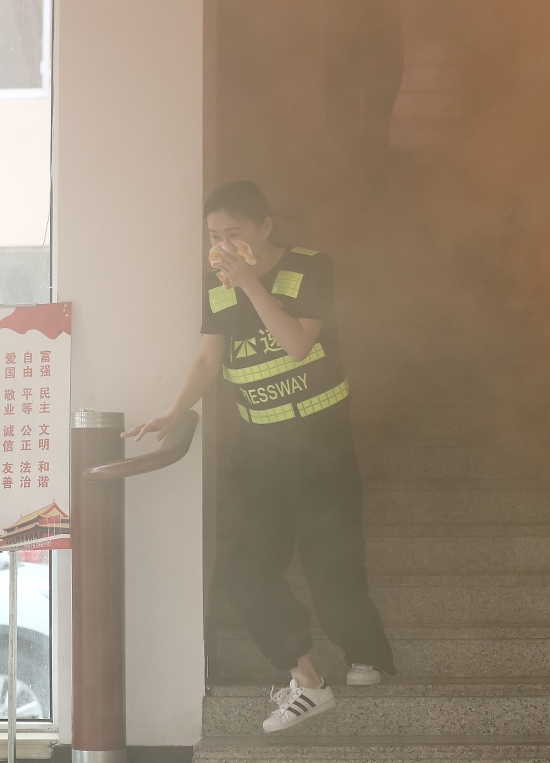 圖為火災(zāi)逃生演練現(xiàn)場 講座結(jié)束后,該所隨即開展火災(zāi)逃生演練。員工發(fā)現(xiàn)“火情”后立即撥打報警電話,參加演練人員聽到警報聲后,迅速拿起打濕的毛巾捂住口鼻,按照正確逃生動作要領(lǐng),從樓上彎腰低姿扶墻往樓下跑,大家有序疏散至安全地帶。 此次消防安全培訓(xùn),提高了全員的消防安全意識,提升了火災(zāi)等突發(fā)事故的應(yīng)急處理能力。 楊雅芬