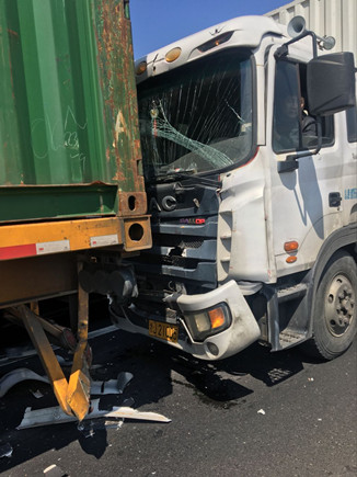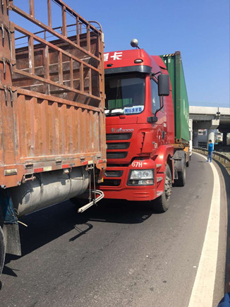 當天中午,在副站崗?fù)づ哉镜墓ぷ魅藛T發(fā)現(xiàn)該所前方出口不遠處有貨車停在那里不動,以致后面車輛無法通行。工作人員隨即跑到前方查看情況,原來是三輛貨車發(fā)生追尾,其中有一輛車車頭被撞得凹陷,擋風(fēng)玻璃也被撞碎,在了解事故現(xiàn)場無人員受傷后,工作人員馬上向監(jiān)控中心匯報情況。由于事故車輛較大面積滯留,導(dǎo)致后方車子堵到主線上,一些不明情況的駕駛員在車里使勁按喇叭催促,現(xiàn)場充滿焦躁情緒。
