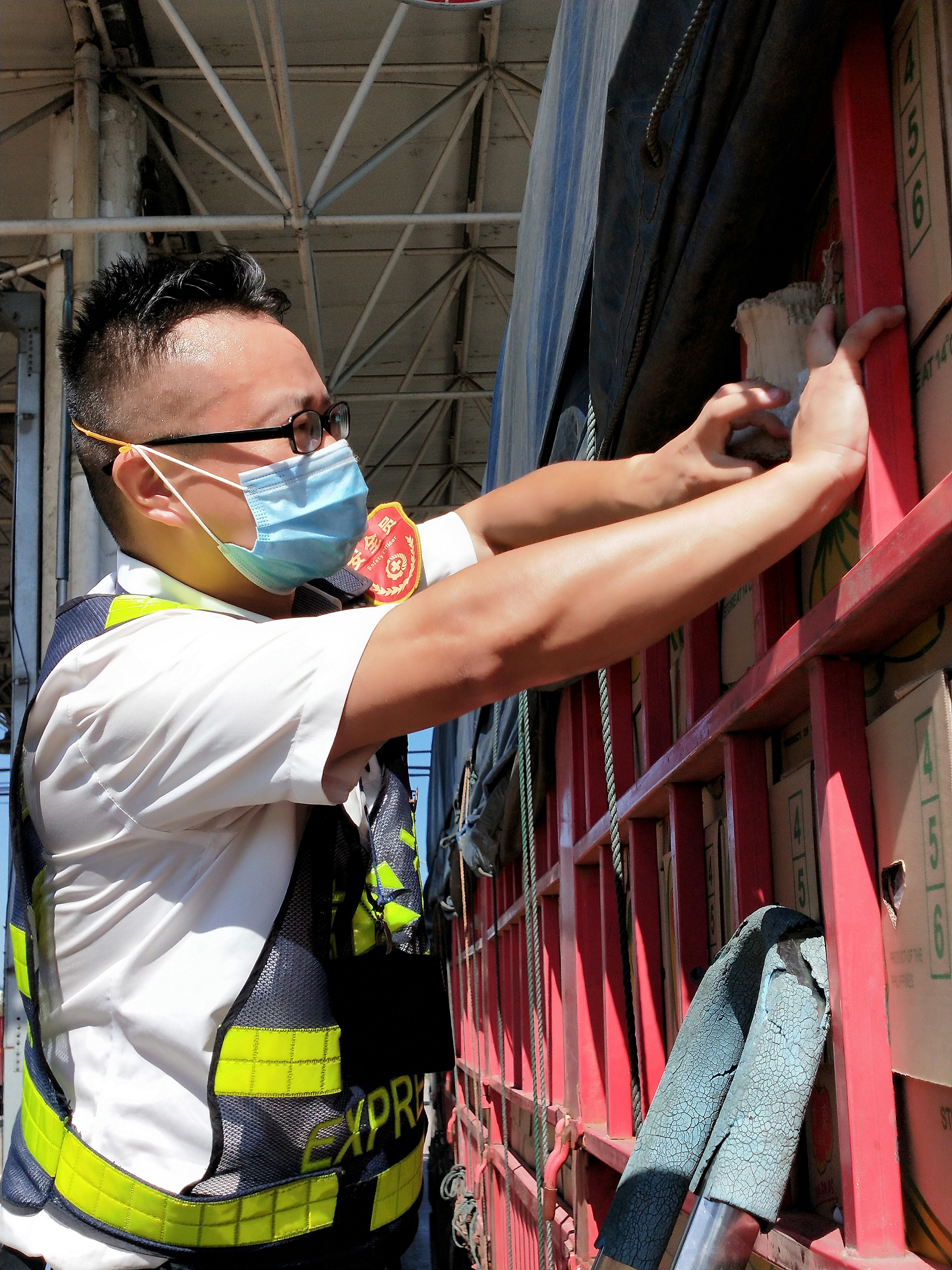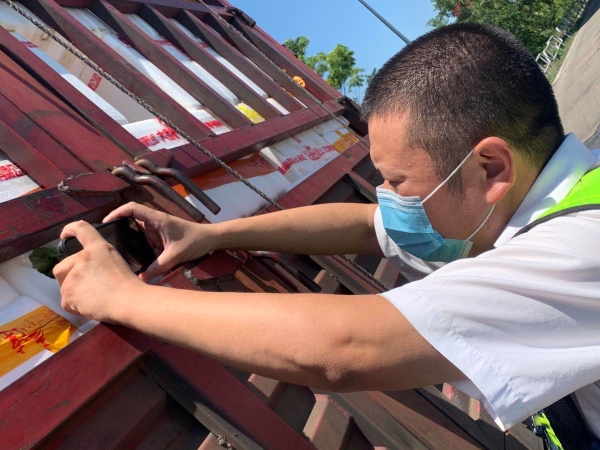 檢查綠農車,遇到攀爬驗貨時,車輛欄桿因高溫炙烤至少在四五十度以上,臺州南收費所班長周冬子笑著說:現在的車欄桿都辣手了,腳底板也像踩了風火輪話音還未落,只見他蹭蹭幾下,已然爬上貨車,一邊檢查貨物一邊用袖子蹭掉臉上豆大的汗珠,被曬得黝黑發紅的皮膚在烈日下格外醒目。綠農車開走后,他顧不上滿身汗水,拿起了掃把開始打掃灑落在車道上綠農產品。因為他知道,這些灑落的農產品,如不及時清理,在太陽曝曬后將會更加刺鼻,影響收費站的形象。