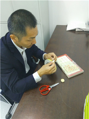 崗亭里的驗鈔機是壓著讀卡器插線頭,導致讀卡器無法使用這個問題雖小,但反復修理多次,還是沒能修好。葉再敏知道,果斷買了一副象棋,將棋盤粘上雙面膠,墊在驗鈔機的底下,從此以后這個小問題再也沒有出現過。