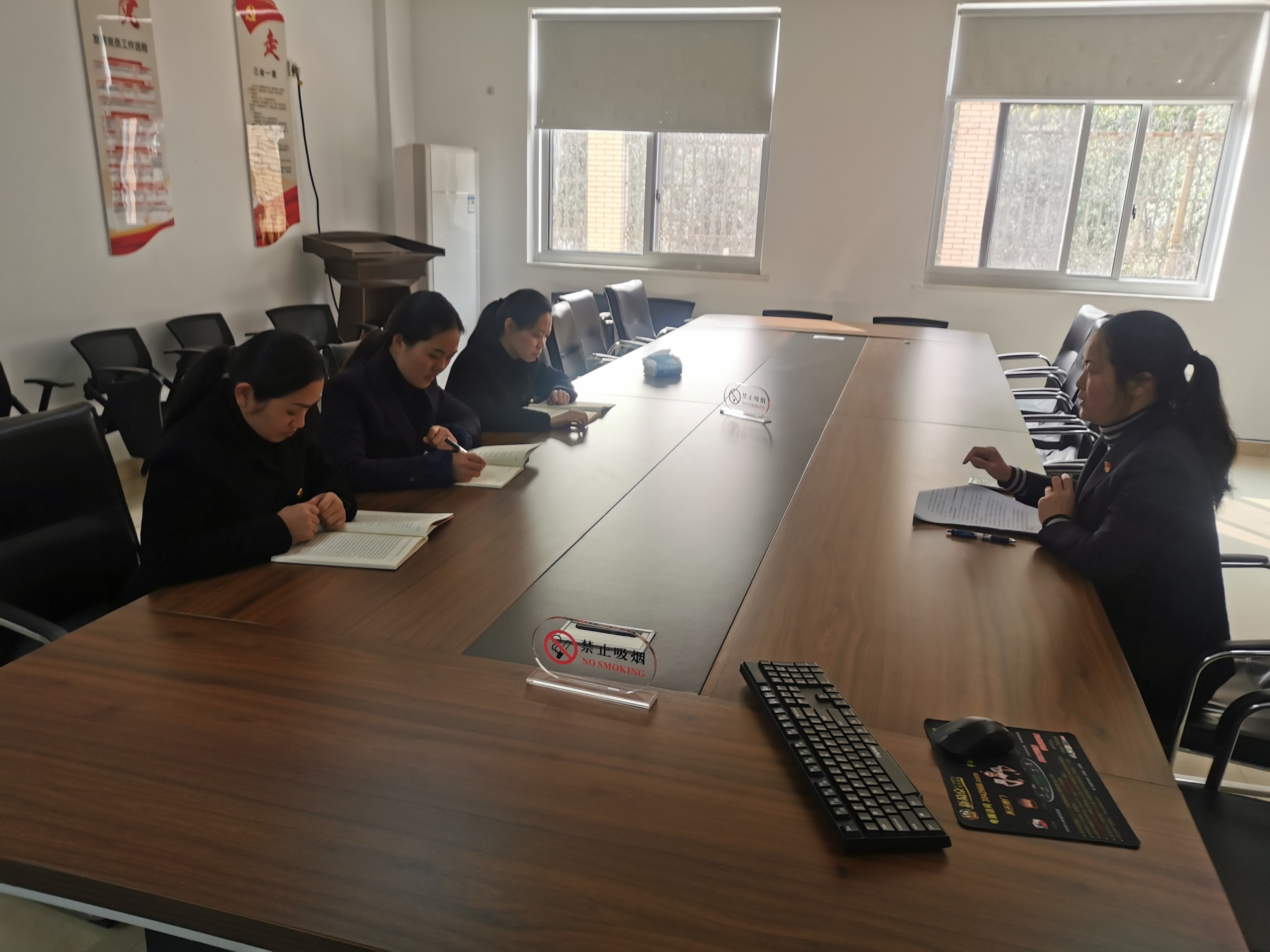 3月18日下午,溫嶺西收費所黨支部召開黨史學習教育動員會,全體黨員參加會議。