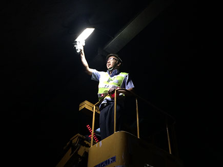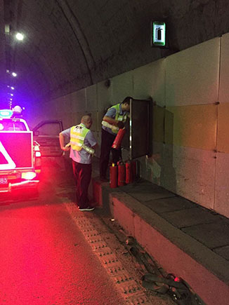 圖為工作人員更換滅火器 因隧道內(nèi)車輛往來密集,氣體和灰塵難以散發(fā),容易沉積在隧道壁、監(jiān)控?cái)z像頭及照明燈上形成污漬,此日積月累削弱了隧道內(nèi)的照明效果,影響駕駛員視線,存在安全隱患。對此,黃土嶺隧道所組織人員對隧道進(jìn)行清洗和維修保養(yǎng)設(shè)備,全面排查各類安全隱患。執(zhí)勤隊(duì)利用登高車逐一清潔寧向左洞內(nèi)監(jiān)控?cái)z像頭及照明燈,檢查消防設(shè)施狀況,統(tǒng)一對滅火器進(jìn)行掛牌完善記錄,并協(xié)同維養(yǎng)中心檢修溫向隧道照明系統(tǒng)線路,修復(fù)損壞的燈具。 經(jīng)過清洗保養(yǎng)后的黃土嶺隧道,燈光通明,監(jiān)控清晰,有效地保障了隧道的安全暢通。 毛譯聆