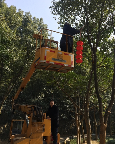 圖為黃土嶺隧道所員工合影 “往左往左,站臺再下降一點。”金先華麻利地操作著登高車,“爬樹高手”金美忠自然地肩負起了懸掛燈籠的任務,而個子高高的廖科則負責遞燈籠,其它人員有的負責將燈籠系好鐵絲,有的負責扛梯子,有的則不時地在遠點兒的位置仔細看燈籠掛得正不正, 兩個燈籠高度是否一致,對聯是否對齊等等。大家有說有笑,忙得不亦樂乎! 不一會兒工夫,喜慶的春聯貼起來,紅紅的燈籠串掛起,管理所員工在一片喜氣的歡樂氛圍中共同期待著的新年的到來! 林 玲
