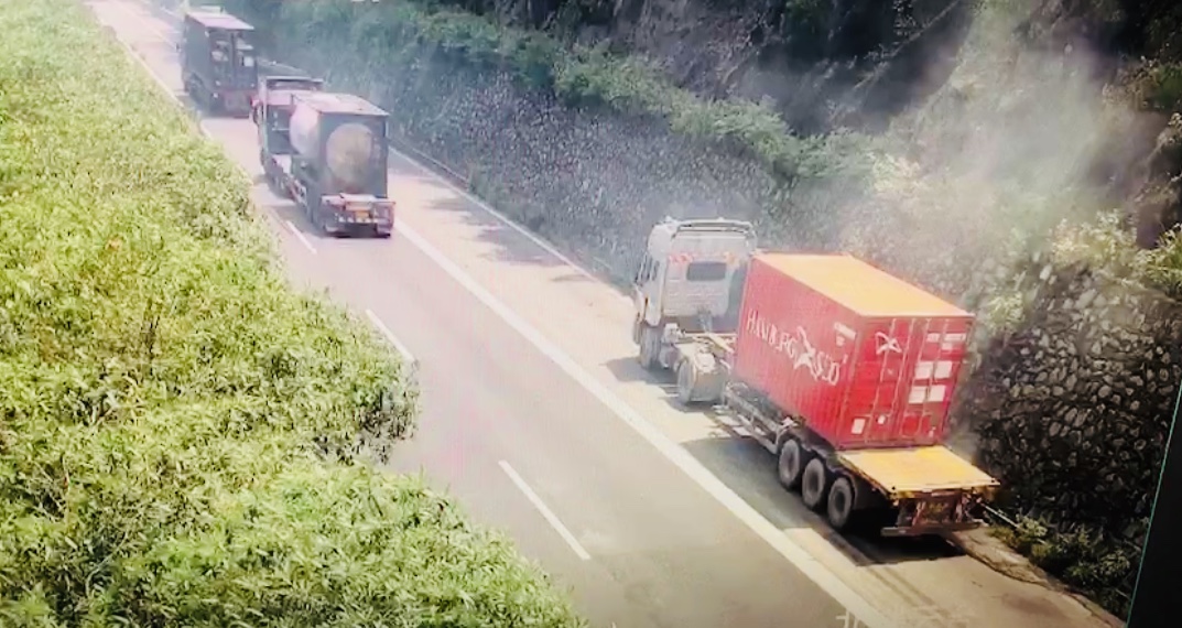 快速出警 將“火”扼殺在萌芽狀態 7月17日,連日的陰雨總算放晴,中控員如常盯著監控大屏,13:18分,黃土嶺隧道溫向北洞口停車帶一輛紅色半掛車極其耀眼,憑借多年的崗位經驗,中控員第一時間切換到主畫面,嚴密監視車輛動態。 “不好,車輛‘著火’了!”短短幾秒鐘的時間,此車右側后方逐漸升起煙霧,越來越濃密。中控員立即通知監控中心與執勤隊,啟動應急預案。