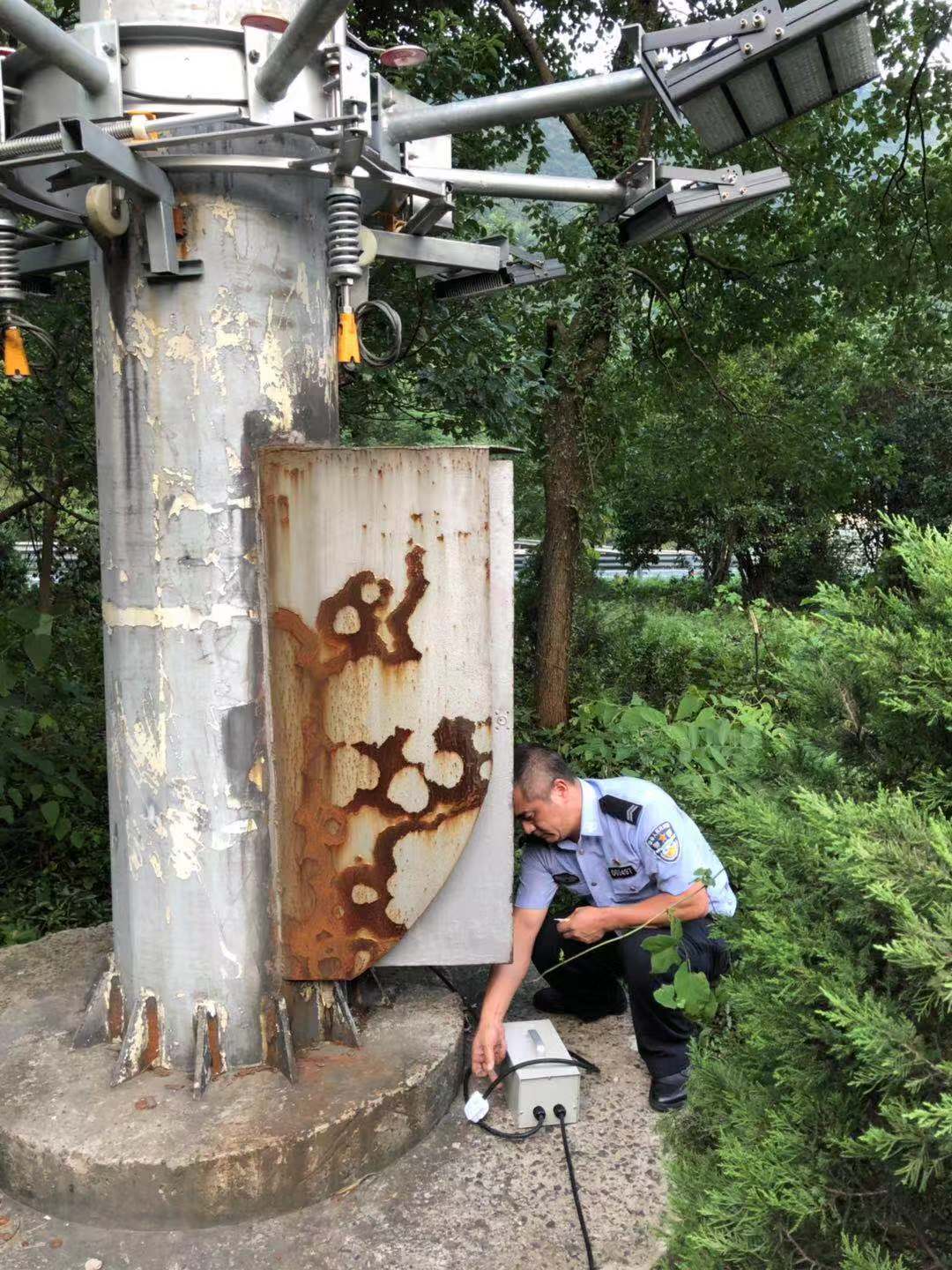 圖為臺(tái)風(fēng)過后隧道所人員檢查南廣場(chǎng)高桿燈