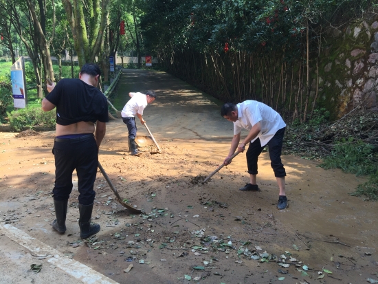 臺(tái)風(fēng)“利奇馬”肆虐而過,雖然黃土嶺隧道所提前做好各項(xiàng)防臺(tái)措施,但是干凈整潔的管理所在這場(chǎng)天災(zāi)中還是遭受到了破壞,樹木倒折、落葉、樹枝滿地,淤泥坑洼,現(xiàn)場(chǎng)一片狼藉。8月12日上午剛剛恢復(fù)正常供水的黃土嶺隧道所,全體人員立馬投入到重建家園中,打掃衛(wèi)生,原地種回倒伏的樹木,清理淤泥……徹底消除臺(tái)風(fēng)過后留下的殘敗痕跡。