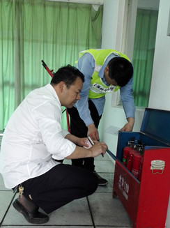 圖為檢查現場 該所副所長應錦清帶領隊員仔細檢查了南北配電房的機電設施,隨后對管理房的干粉滅火器、隧道內的泡沫滅火器,配電房、中控室的二氧化碳滅火器進行逐一檢查,查看每個滅火器的壓力值、出氣管有無彎折、堵塞、損傷,壓把和閥體等金屬件有無變形和銹蝕,是否還在使用年限之內等等,并做好相應的檢查記錄。 陳智慧