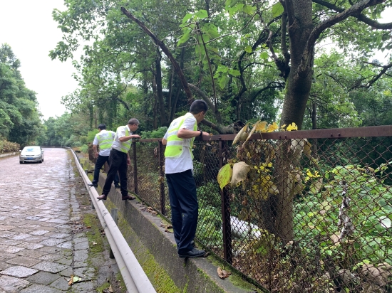 為全力防御臺風,8月8日上午,所立即啟動“臺風應急處置預案”,成立應急領導小組、搶險小分隊、應急小分隊,各分隊成員對隧道堅井、隧道邊坡邊溝進行逐一細致檢查,排查隱患