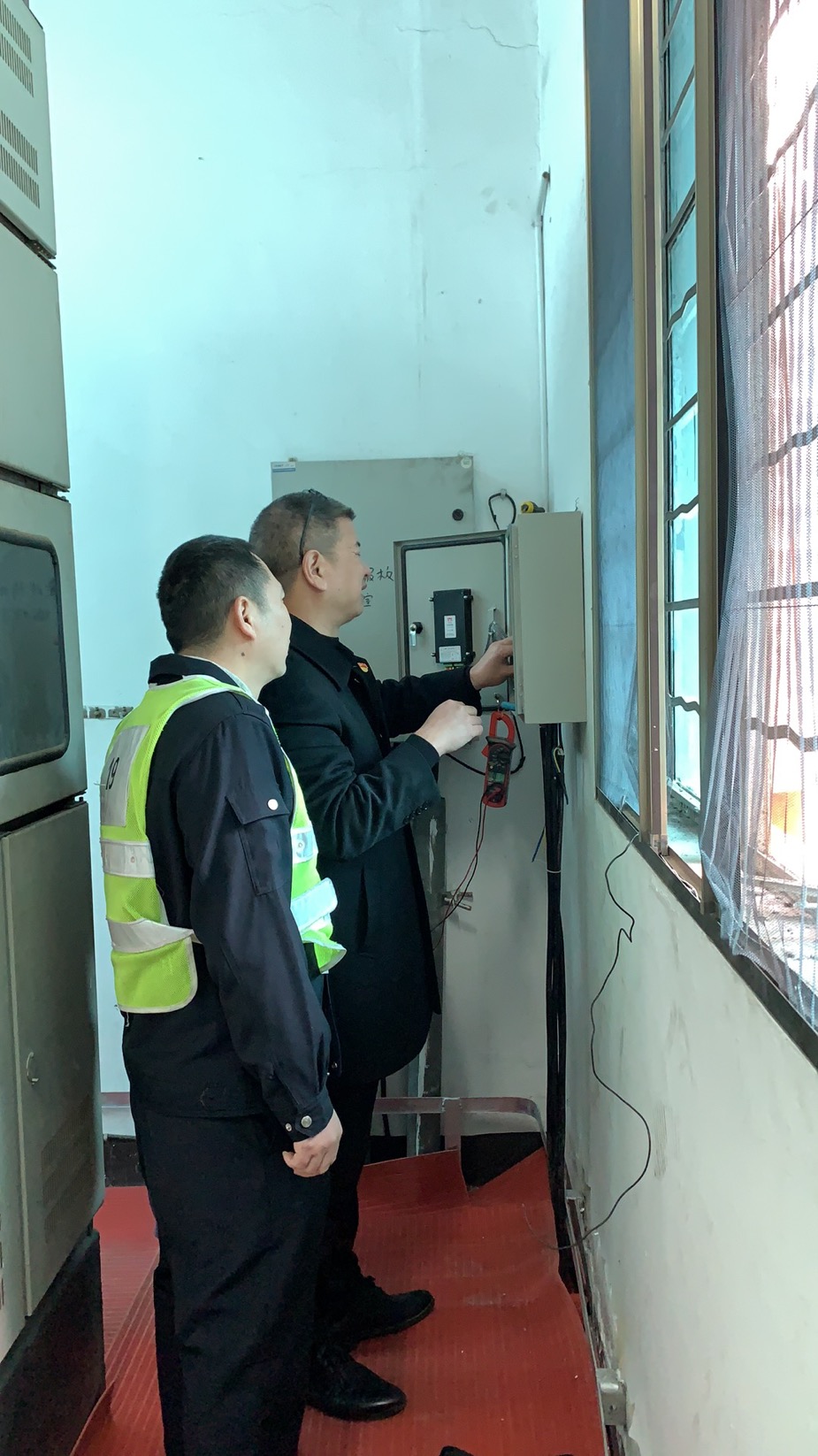 圖為設備設施檢查 當天,該所開始春運專項安全生產大檢查,要求春運期間要加強安全管理和責任,強化監(jiān)督檢查,抓好安全預防。10日,該所又做了一次全面的安全檢查和隱患排查,對隧道兩邊的高邊坡、豎井、高位水池、配電房、隧道內外的各個消防設施等進行重點檢查,及時處理發(fā)現(xiàn)的問題,并做好相應檢修工作。12日,對隧道南廣場的高桿燈進行改造。14日,管理所進行了全面的衛(wèi)生大打除,操場、辦公室、食堂、寢室、衛(wèi)生間的各個角落,逐一進行清理,干凈整潔迎接新年。