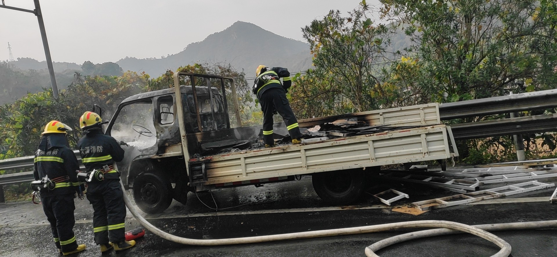 大溪嶺溫向隧道口發生貨車火災