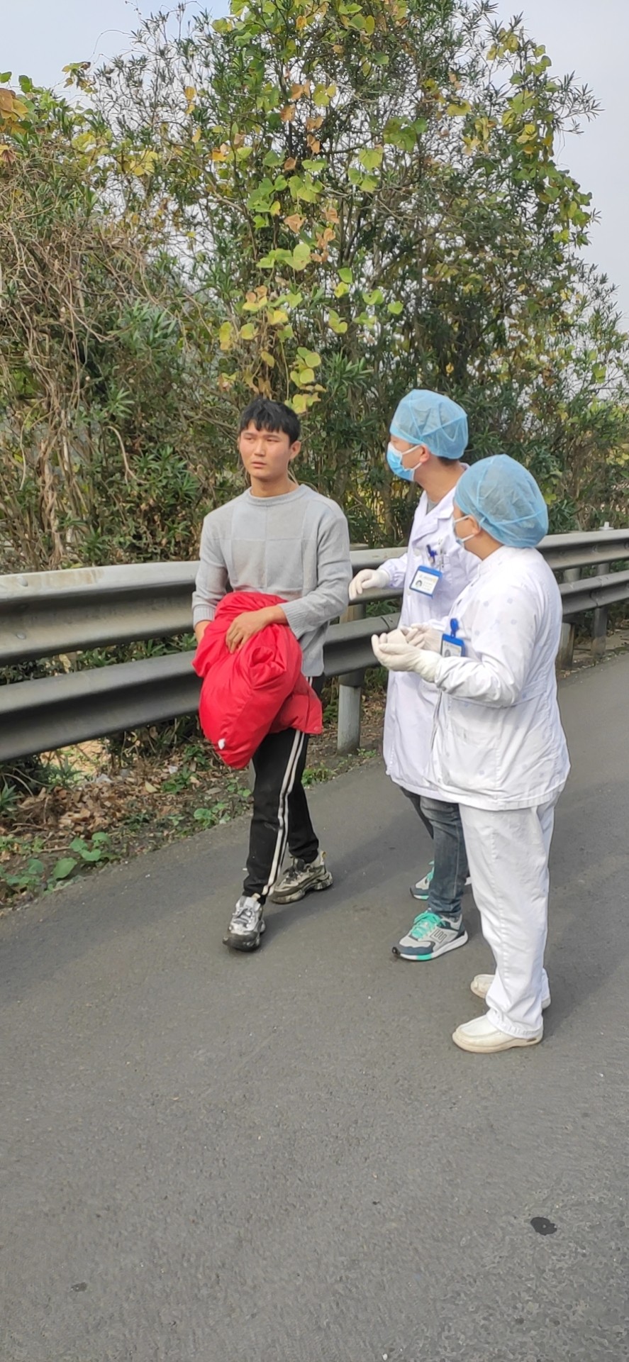 12131248中控發現溫向隧道入洞口600米處的情報板下濃煙滾滾,中控切換火災圖像至監控中心。并啟動火災報警系統,按下火災按鈕,由于著火點距離隧道北廣場最近的消火栓有500百米,隊員們出警時從倉庫里取出數只滅火器,由于車輛未實施封道,車輛一直在事故車旁邊呼嘯而過,給現場救援帶來難度,王宇鵬、湯寧光、陳幸帶著滅火器飛奔去滅火,巡邏車準備駛入事故車后進行封道預警。