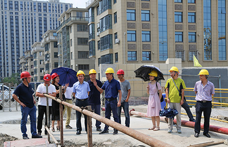 圖為集團副董事長、總經(jīng)理張建平在文鼎苑項目工地了解工程進度情況