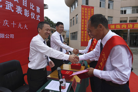 圖為集團(tuán)領(lǐng)導(dǎo)與獲獎(jiǎng)人員握手