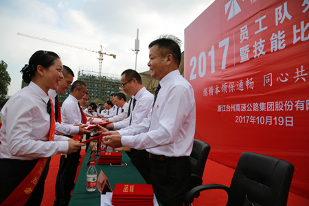 “立正、向后轉(zhuǎn)、齊步走、正步走……”10月19日下午,臺(tái)州收費(fèi)所管理房廣場(chǎng)上,伴隨著一聲聲嘹亮的口號(hào),傳來(lái)一陣陣整齊有力的步伐聲。6支收費(fèi)所、隧道所代表隊(duì),正在場(chǎng)上進(jìn)行緊張的隊(duì)列比賽。最后經(jīng)過(guò)激烈角逐,溫嶺西收費(fèi)所代表隊(duì)獲得了隊(duì)列項(xiàng)目的第一名。隨后,集團(tuán)舉行了以“煉精本領(lǐng)保暢通、同心共慶十九大”為主題的員工技能比武總結(jié)表彰儀式,對(duì)在技能比武獲獎(jiǎng)的員工和集體進(jìn)行了隆重表彰!