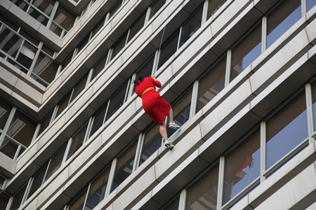圖為高層逃生演練現(xiàn)場(chǎng)