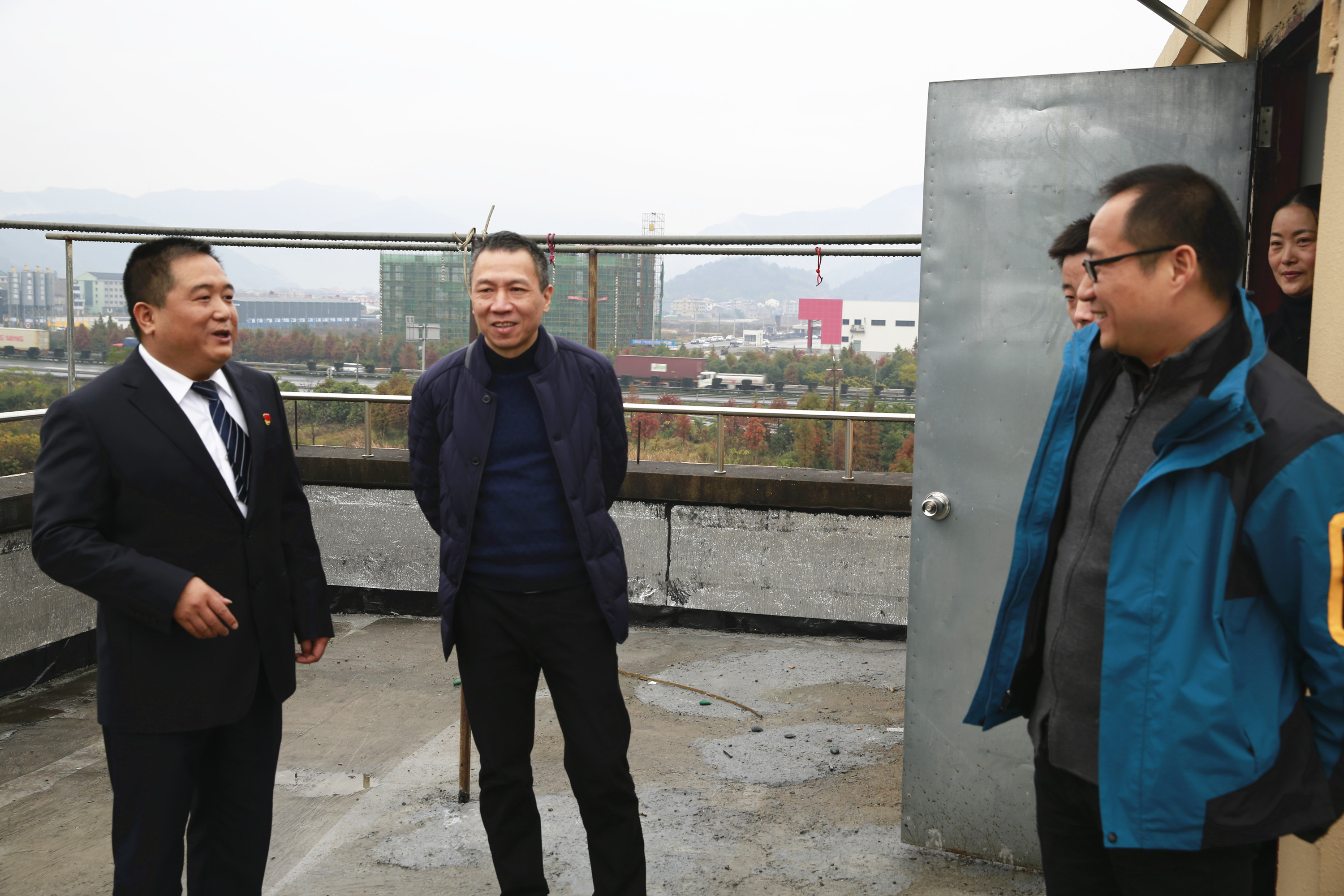 圖為集團(tuán)副董事長、總經(jīng)理張建平檢查臺州南收費所陽光房