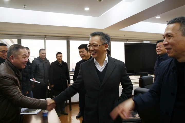圖為臺州市副市長鄭敏強與集團中層正職親切握手