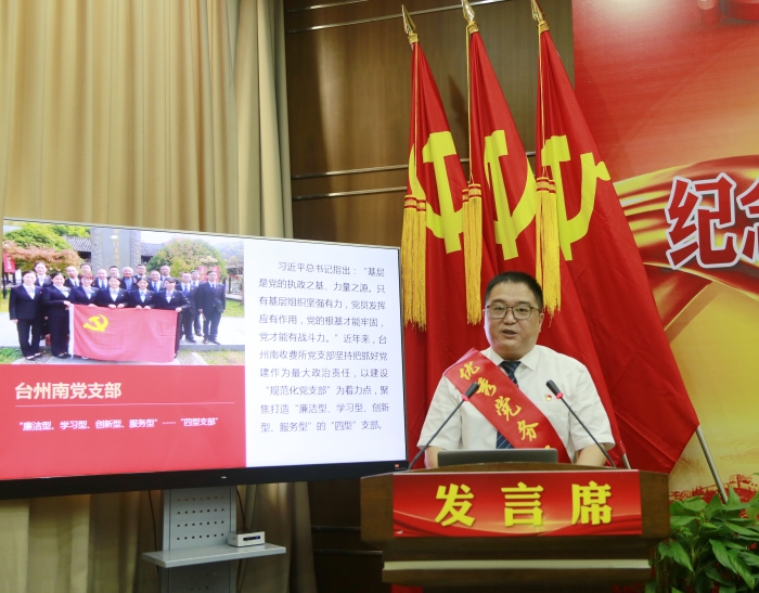 圖為臺州收費所黨支部牟丹發言