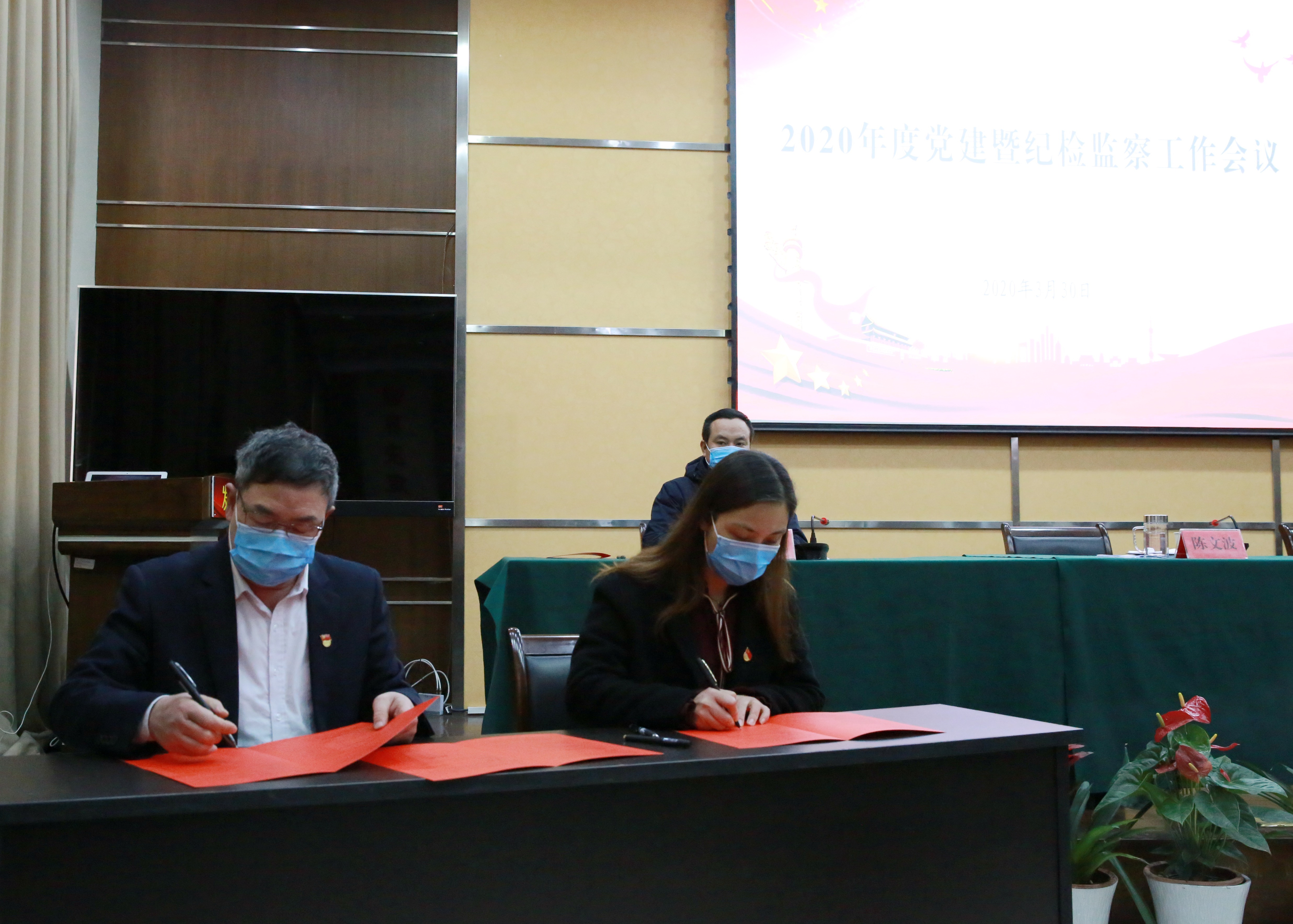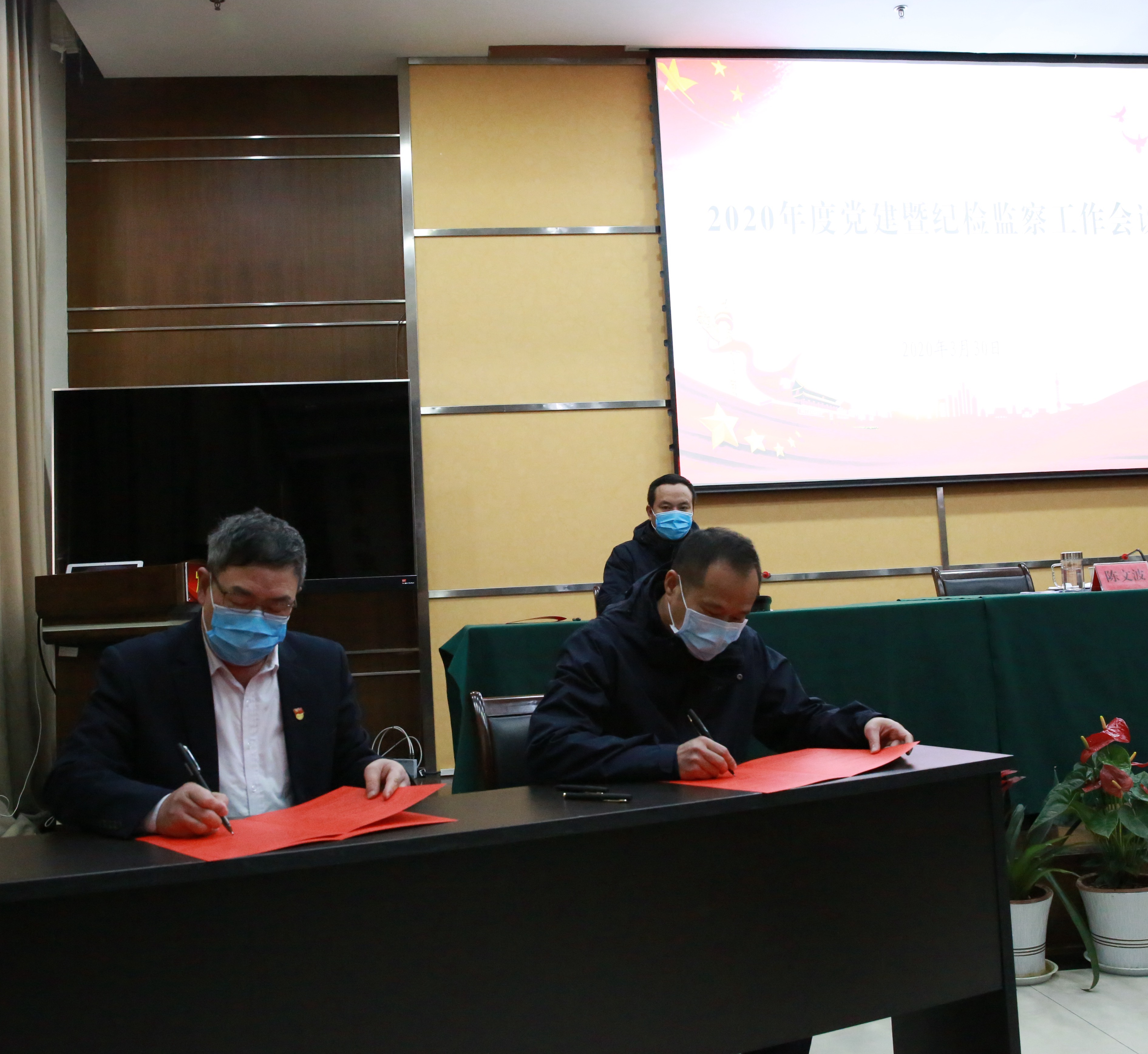 集團(tuán)黨委書(shū)記、董事長(zhǎng)陳文波與班子成員簽訂《黨風(fēng)廉政建設(shè)責(zé)任狀》。
