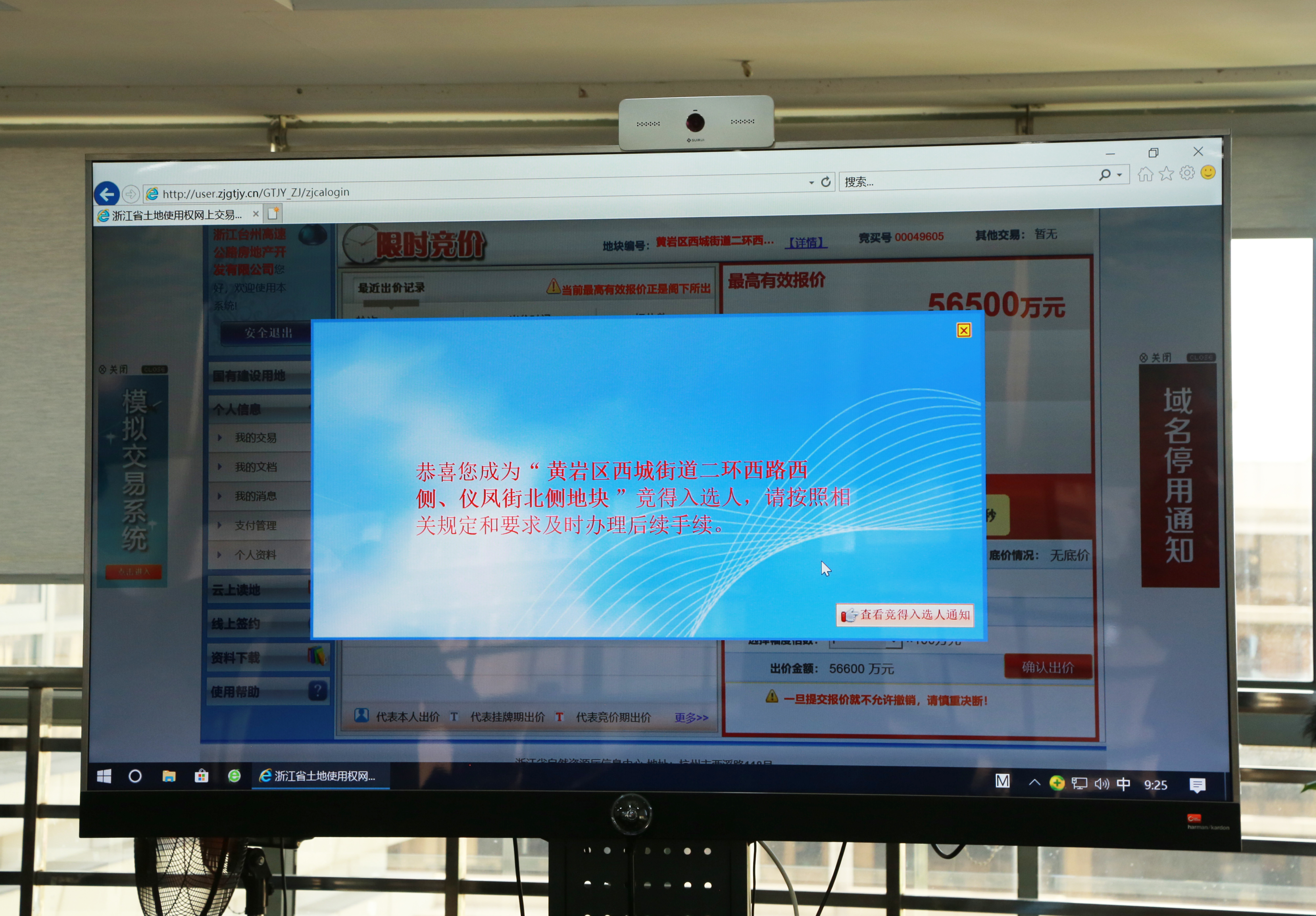喜報!臺州高速再次成功斬獲黃巖新地! 6月18日上午9點20分,臺州高速集團再次斬獲黃巖新地!以5.65億元成功競拍黃巖區(qū)西城街道二環(huán)西路西側(cè)、儀鳳街北側(cè)地塊。臺州高速集團黨委書記、董事長、總經(jīng)理陳文波坐鎮(zhèn)指揮,副總經(jīng)理羅小將陪同參加競拍。
