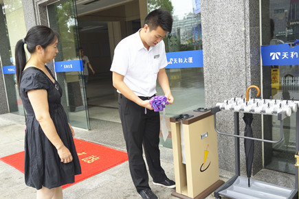 圖為物業公司工作人員幫助來客折傘 為提高物業管理質量,營造安全、舒心的大樓環境,前段時間,辦公室根據大樓實際情況和業主需求,精心制定更換物業方案,擴大選擇物業公司至全省范圍,深入調查了解有選擇意向的物業公司,并通過現場考察以及經由天和大廈業委會開會決定,最終敲定浙師大印象物業管理有限公司負責本大樓物業管理。 5月1日,該物業公司正式入駐大樓,開啟了新物業管理改革風潮,在服務質量、人員形象、崗位職責、保潔等方面進行了全面整改。對比原先的物業公司,他們不僅增加人員配置,還提高上崗人員形象、素質要求,整體改善大樓一些臟、亂的環境,設立服務中心前臺、統一規范業主廣告位、在大廳放置沙發以接待訪客等,尤其在大樓正門入口一側設立形象崗,同時根據大樓用戶需要,分別在大樓A、B幢放置快遞柜,方便用戶取用物品。為了大樓安全,該物業公司還摸底各樓層工作人員名單、聯系方式、具體辦公地點,以防陌生人員無故闖入大樓。 據該物業公司副總經理霍正佩介紹,其公司要求形象崗上的工作人員要規范使用迎賓用語,同時服務中心前臺客服人員上班時間延長至晚8點,以更好地滿足部分業主需求。 在此期間,公司辦公室一直持續跟進物業交接、整改工作,共同完善物業管理,創造大樓新形象。在新物業入駐第二天,公司安保部便對安全生產工作情況進行了全面檢查,并提出整改建議。 陳林偉