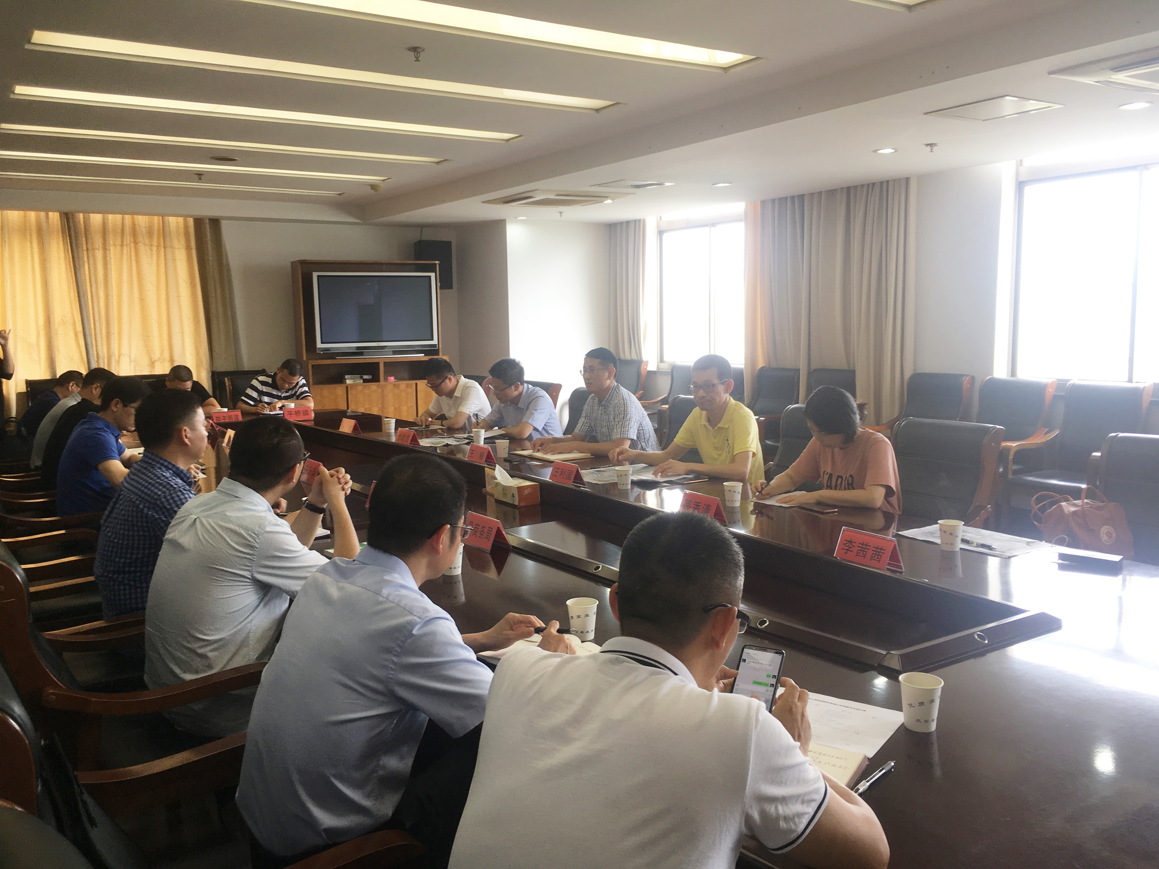 圖為項目接洽會 當天上午,天臺縣人民政府付縣長陳天新召集縣商務局、住建局、基投公司、始豐街道、平橋鎮等相關負責人在縣政府大樓召開項目接洽會,參會各單位分別介紹了所屬地塊的詳細情況,并對考察組所關心的相關問題進行解答。