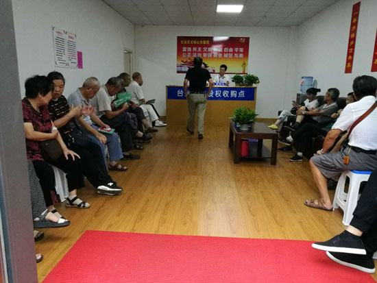 “大爺!你好!您請坐!”收購點的工作人員忙著接待各位股東,集團總經理張建平來到股權椒江收購點親自為股東服務,為股東遞上各種股權轉讓資料。集團其他領導班子分別赴各個收購點檢查指導,確保啟動日順利開展收購工作。