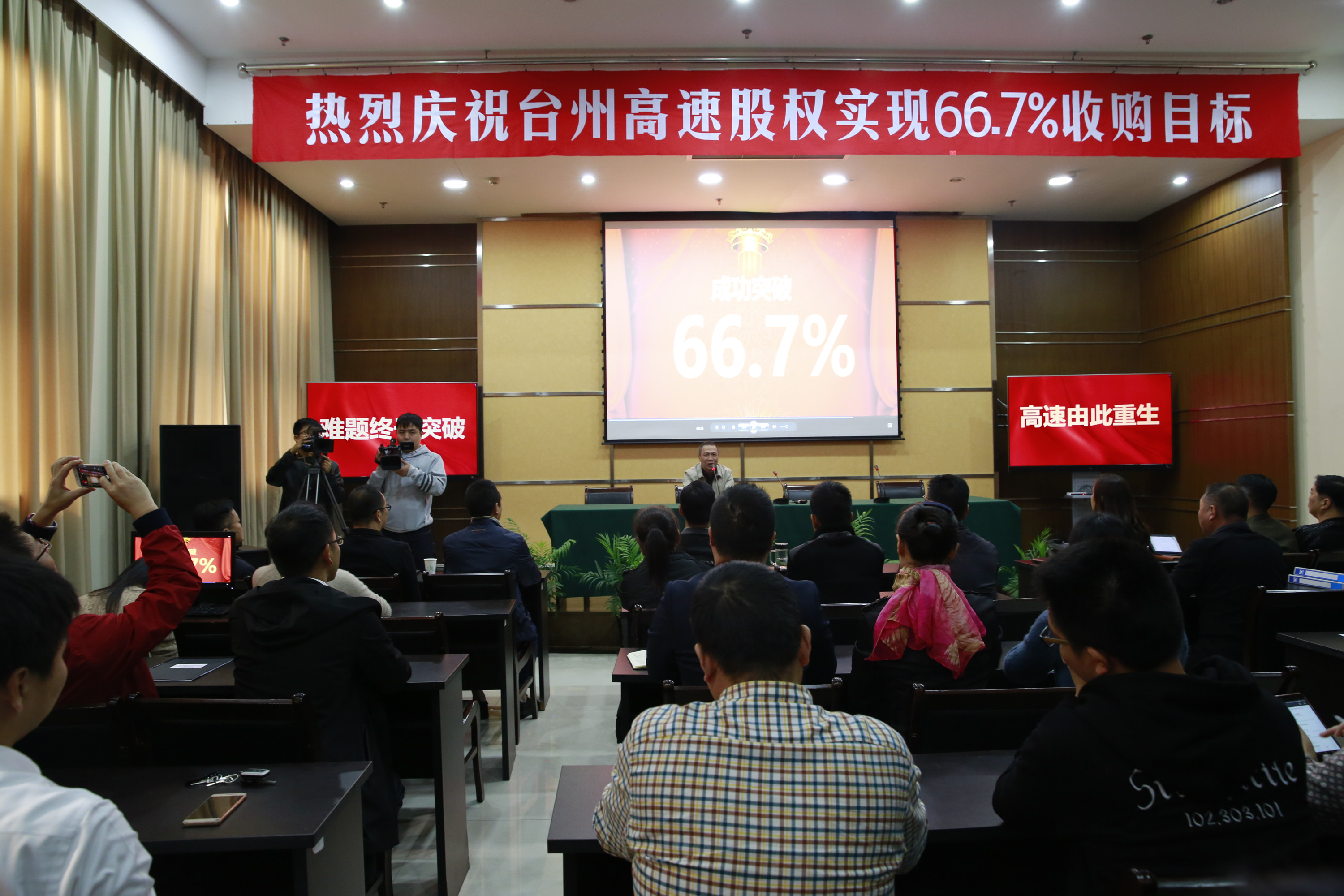 臺州高速股權(quán)集中和優(yōu)化工作領(lǐng)導(dǎo)小組辦公室主任、臺州高速集團總經(jīng)理張建平鄭重地宣布:“至此,全市共完成臺州高速股權(quán)轉(zhuǎn)讓6947萬股,臺州市屬國企及黃巖財務(wù)開發(fā)公司合計持股數(shù)1.441億股,完成了66.7%的預(yù)定收購目標。”