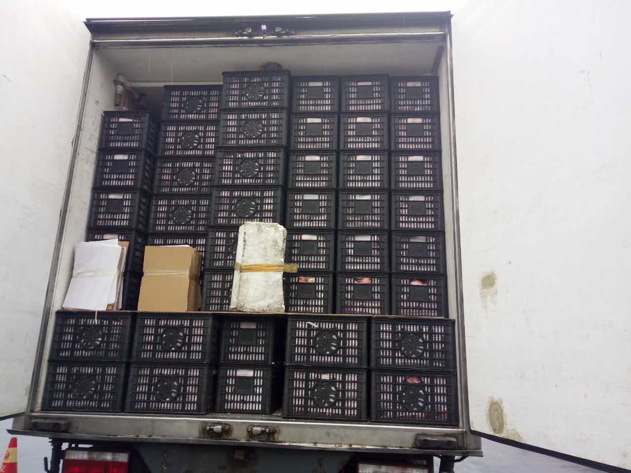 圖為被處罰的車輛 早上10點(diǎn)40分左右,這輛運(yùn)蘋果的貨車駛?cè)胧召M(fèi)站的一號(hào)崗?fù)ぃ緳C(jī)師傅說(shuō)自己運(yùn)的是蘋果,根據(jù)公司規(guī)定,綠農(nóng)車檢查必須開車門檢查貨物。憑著多年的檢查經(jīng)驗(yàn),當(dāng)班班長(zhǎng)童軍偉發(fā)現(xiàn)這輛綠農(nóng)車有問題,覺得重量遠(yuǎn)遠(yuǎn)不夠,可能不符合“綠農(nóng)”免費(fèi)政策。果不其然,車廂中“深藏玄機(jī)”,左右兩側(cè)各有一排玻璃鋼魚箱,這就給檢查增加了難度。當(dāng)班班長(zhǎng)要求司機(jī)師傅把最后兩排箱子拿掉,想檢查玻璃魚缸,然而這個(gè)司機(jī)極其不配合,還惡意刁難工作人員,說(shuō)什么也不搬蘋果。