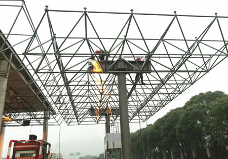 “起吊”,隨著現(xiàn)場(chǎng)施工管理人員的一聲令下,兩臺(tái)吊機(jī)吊著鋼結(jié)構(gòu)網(wǎng)架緩緩升起。“往左一點(diǎn),慢一點(diǎn)”經(jīng)過(guò)近十分鐘的努力,在施工現(xiàn)場(chǎng)管理人員的準(zhǔn)確指揮下,吊機(jī)駕駛員輕輕地把鋼結(jié)構(gòu)網(wǎng)架準(zhǔn)確無(wú)誤地放在預(yù)定支架上,溫嶺西收費(fèi)車道鋼結(jié)構(gòu)網(wǎng)架成功完成吊裝。接下來(lái)施工人員陸續(xù)在網(wǎng)架上鋪設(shè)面板,安裝標(biāo)志牌、照明、監(jiān)控等設(shè)備,并對(duì)崗?fù)C(jī)電進(jìn)行調(diào)試。