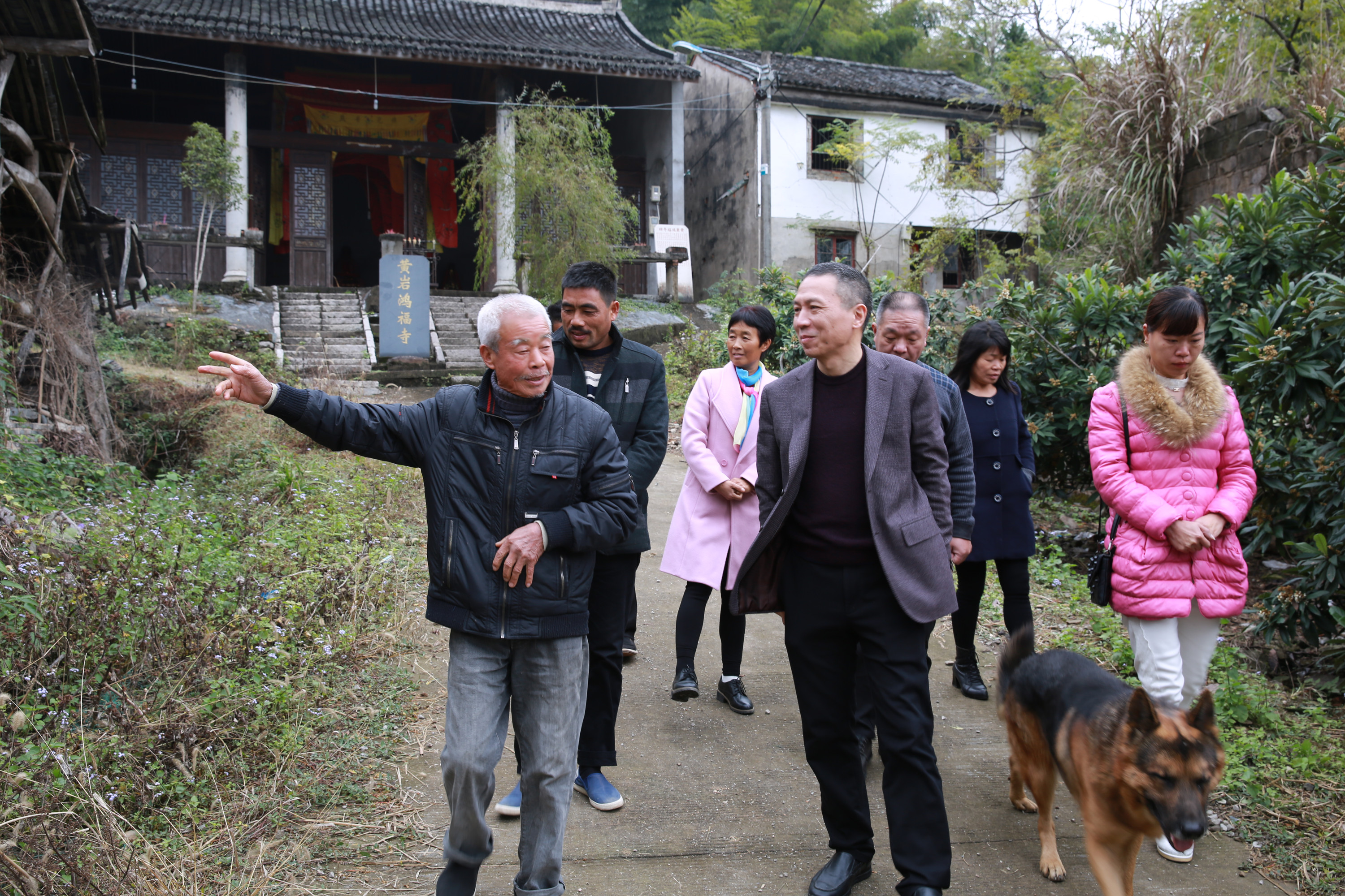 圖為公司黨委副書記、總經(jīng)理張建平實(shí)地踏勘鴻福寺原址