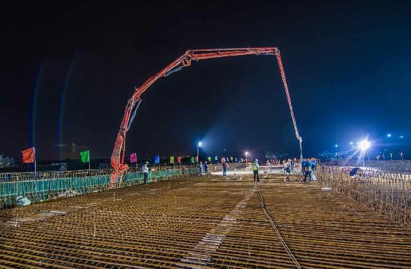 圖為4月21日凌晨,內(nèi)環(huán)路8#立交第二聯(lián)箱梁頂板澆筑場景。鐘 彪攝 8#立交工程位于黃巖區(qū)紅三村和紅四村,主線橋8#立交全長1300多米,是臺州市首座全互通四層立交。東接九峰公園,西臨黃巖主城區(qū),上跨二環(huán)東路,南北連104國道,作為內(nèi)環(huán)路唯一一個位于城鄉(xiāng)接合部關(guān)鍵節(jié)點,復(fù)雜的施工環(huán)境,繁瑣的交通組織,給工程的正常推進帶來了嚴峻的考驗。“我們?nèi)w參建人員根據(jù)現(xiàn)場情況不斷優(yōu)化方案,細化措施,狠抓落實,連續(xù)作戰(zhàn),保證每月完成既定任務(wù)指標。”8#立交項目現(xiàn)場負責(zé)人金小琳表示。 目前,8#立交主線橋梁順利貫通,離11月11日主線通車的目標又邁進了一大步。據(jù)臺州高速市政建設(shè)投資有限公司副總經(jīng)理何翔介紹,接下來的工作重心是在主體結(jié)構(gòu)完工的基礎(chǔ)上抓緊匝道及附屬構(gòu)筑物的施工,爭取讓臺州市民能盡早用上這條民心路。 (本文轉(zhuǎn)自《臺州日報》2017年4月22日第01版) http://paper.taizhou.com.cn/tzrb/html/2017-04/22/content_794805.htmfrom=groupmessage&isappinstalled=1