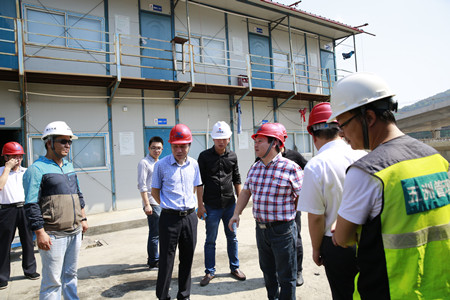 圖為集團(tuán)副董事長(zhǎng)、總經(jīng)理張建平檢查內(nèi)環(huán)路8#立交民工生活區(qū)